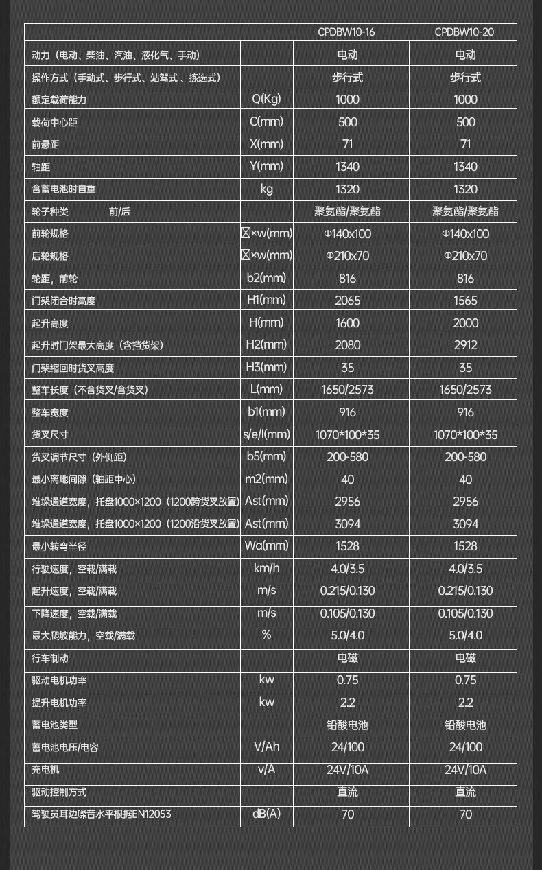 扬子电动叉车平衡重堆高车步行式配重堆垛车CPDB10W-16