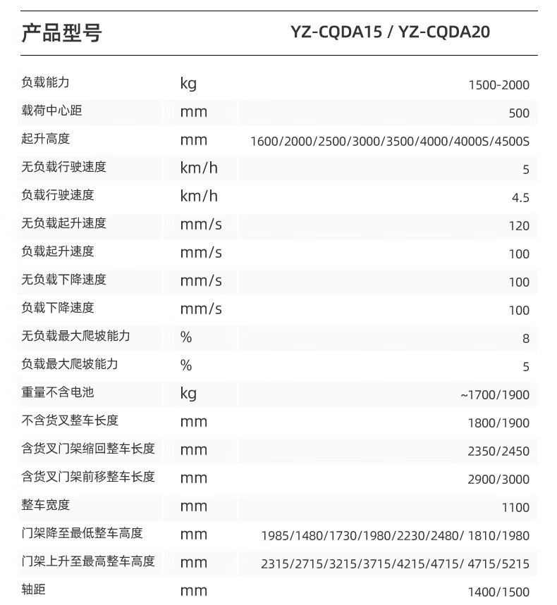 扬子全电动叉车前移式堆高车无叉腿堆垛车CQD