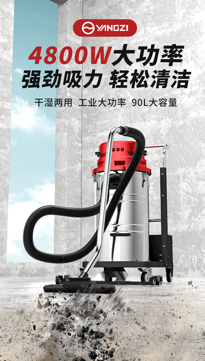 扬子4800W大功率工业吸尘器干湿两用工厂车间用YZ-C2 不锈钢款