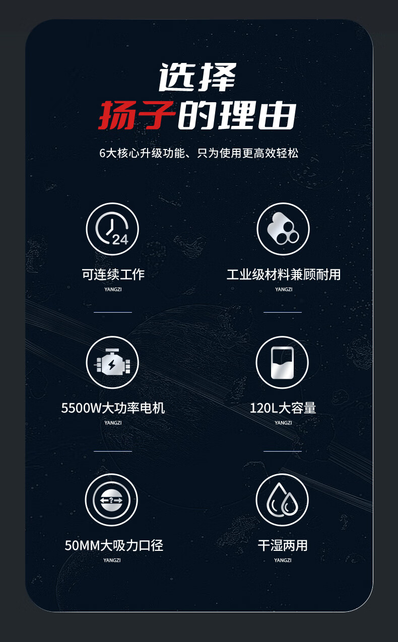 扬子大功率工厂车间粉尘铁屑工商两用吸尘器YZ-C12